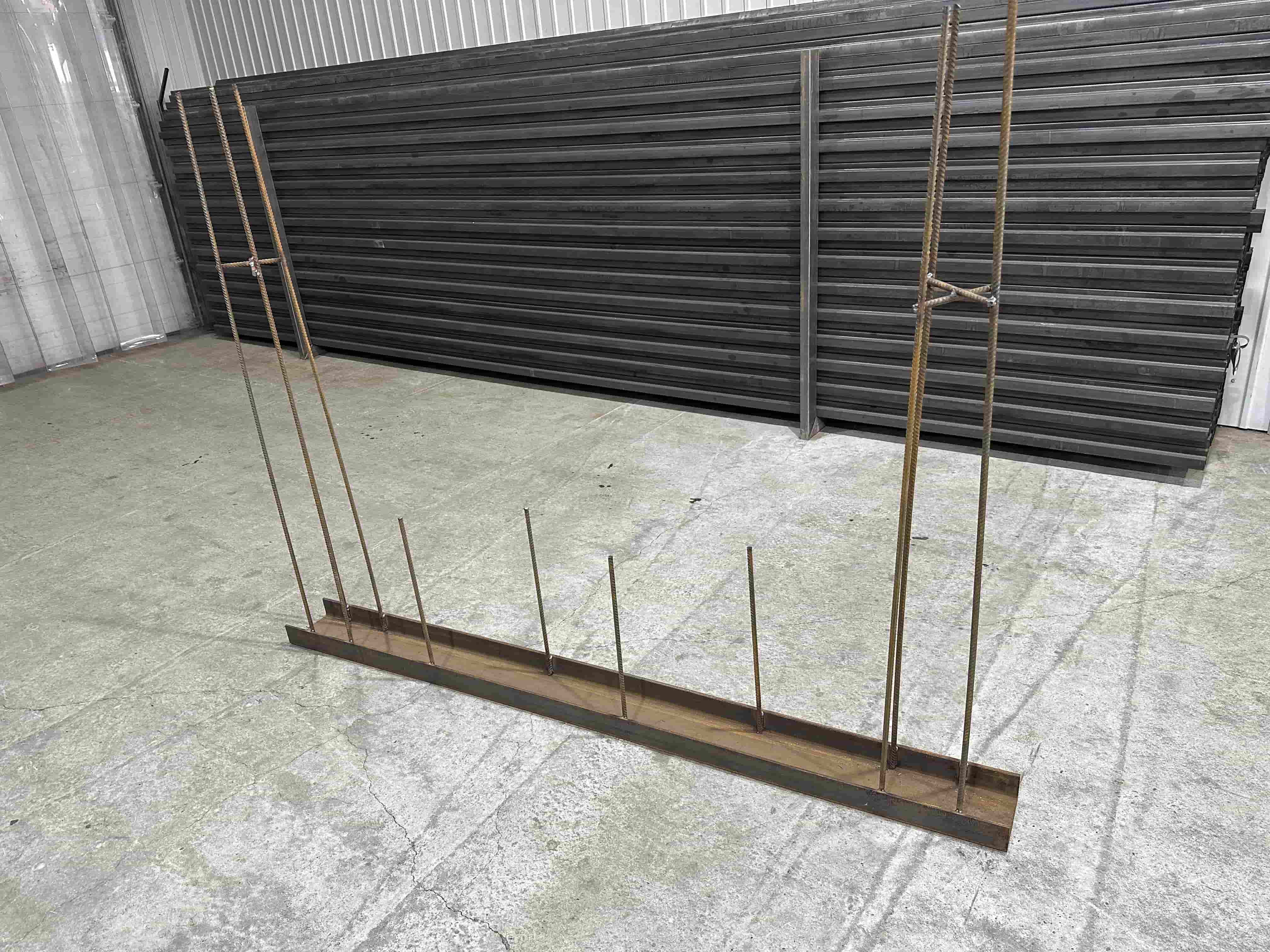 - Непосредственно к швеллеру снизу привязываются отрезки арматуры. Фундамент заливается из качественного бетона М 250 - 300, в качестве обрешетки используется стальная арматура.